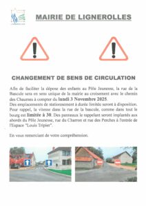 Vendredi 31 octobre 2025, de 18h00 à 22h00, à la salle des fêtes - Changement du sens de circulation Rue de la Bascule