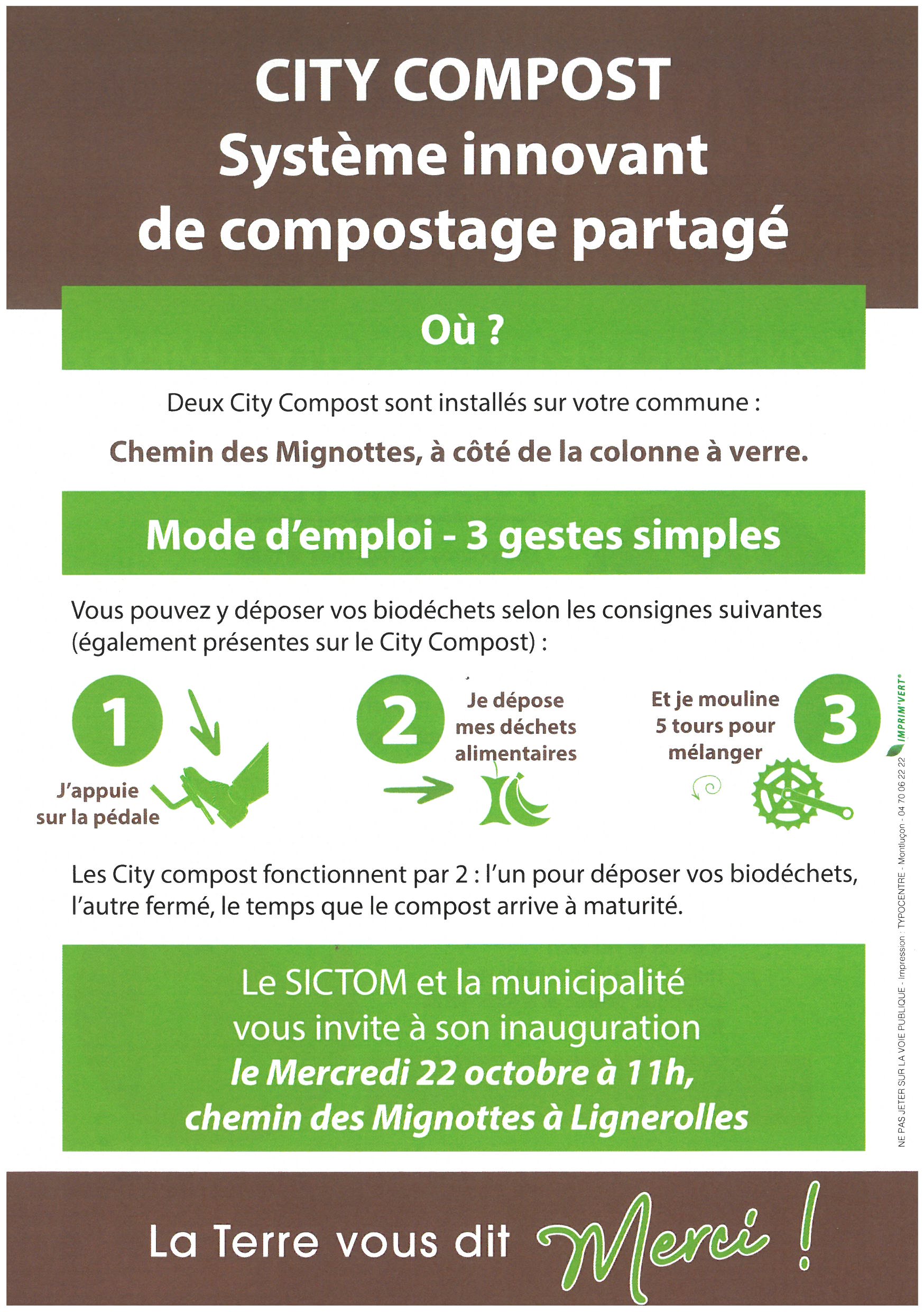 Mise en place sur la commune, chemin des Mignottes (à côté de la colonne à verre), de 2 CITY COMPOST système innovant de compostage partagé.