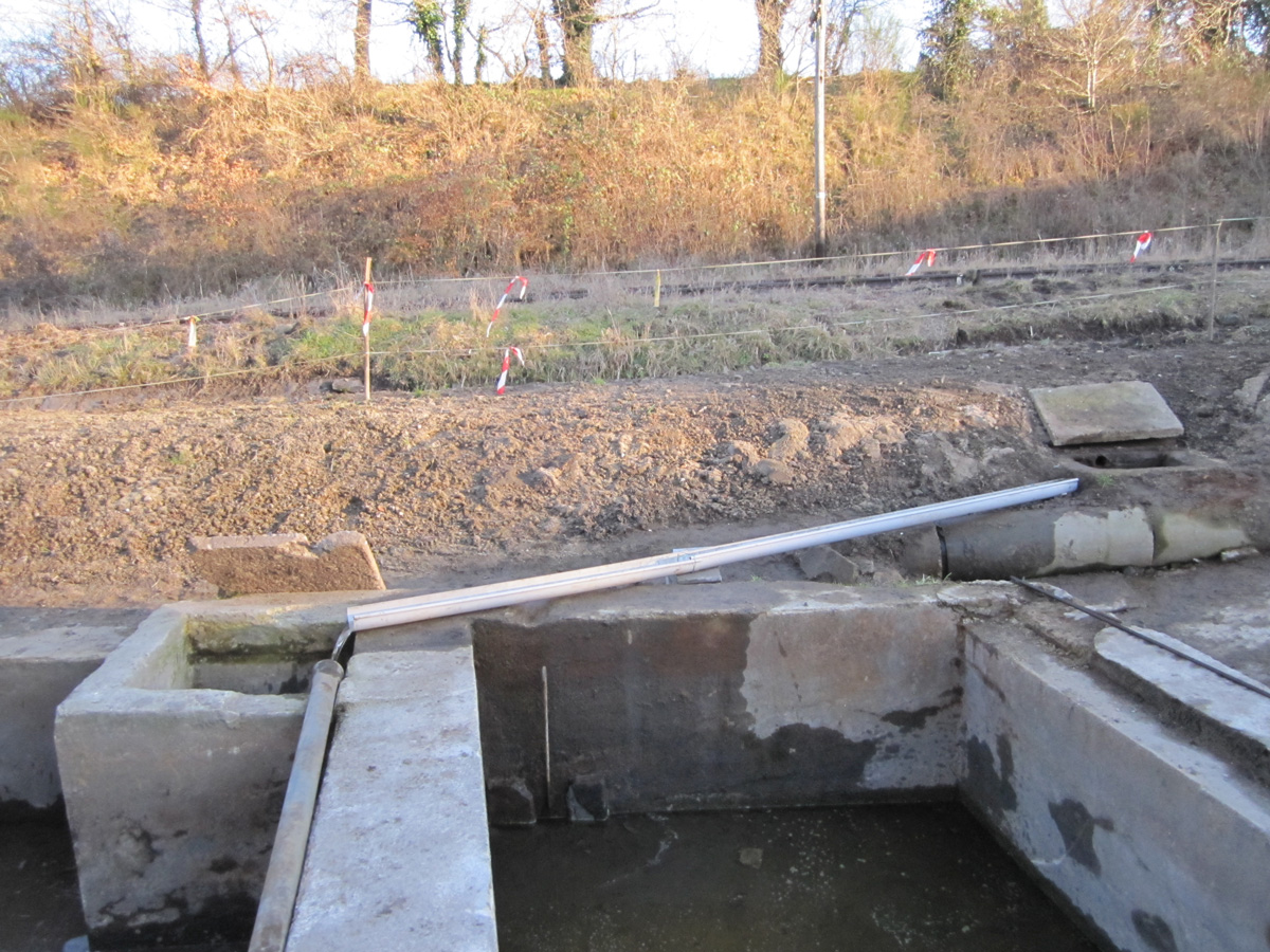 Réfection du ciment à l’angle de l’abreuvoir. Installation d’une retenue d’eau et d’un tuyau de quatre mètres pour assurer l’alimentation des bassins.